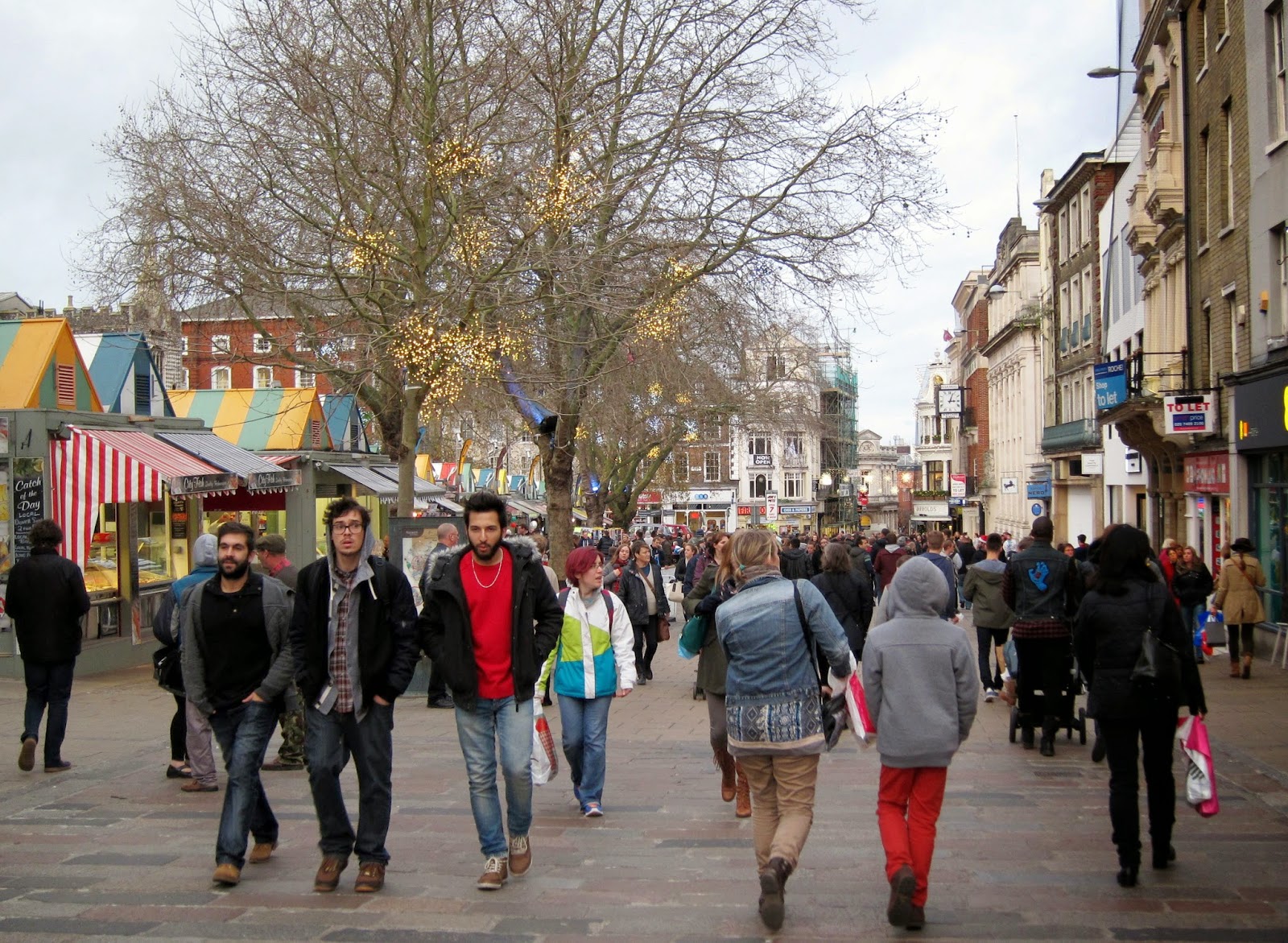 - total pedestrianisation: there are no vehicles in shopping centre alleys, nor are cars parked there. Pedestrianisation – feared and reviled by downtown shop-keepers in North America – is a feature of suburban shopping malls! It is also a feature of many many European and Latin-American cities such as London, Norwich, Exeter, Cambridge, Oxford, Berne, Lyon, Mexico-City, Strasbourg, Freiburg…..