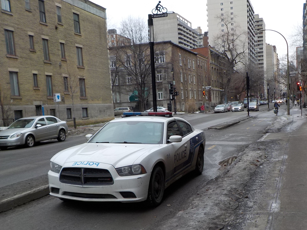 A1. Ice and vehicle on de Maisonneuve cycle path: I should call the police.