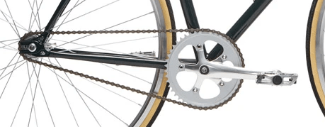 There is no simple way of defining a bike, let alone a single-gear one. For the purposes of this short piece, a single-gear bike is defined as a bicycle (two wheels, frame, fork, handle bars, seat, pedals, chain, chain ring…) all assembled in a standard way (see Figure 1). Its distinguishing feature is the rear sprocket – indeed, it only has one rear sprocket: no cassette, no derailer, no hub-gearing (see Figures 2 and 3).