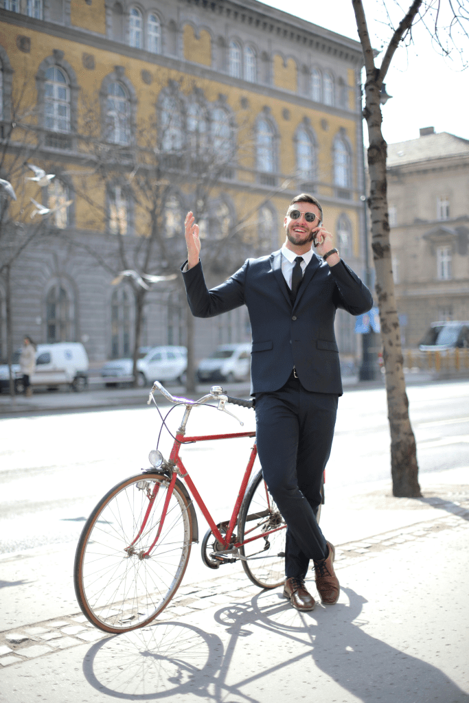 It is impossible – unless the ride is very short – to arrive looking 100% immaculate, with perfectly creased trousers, combed hair, straight bow-tie and starched shirt. A certain amount of sophisticated and tasteful sartorial dishevellment is inevitable.