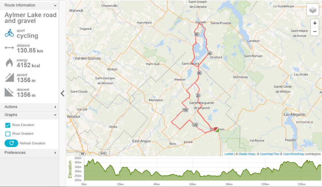C’est la prochaine ride que je vais explorer. Je connais la région, j’ai roulé ou conduit le long de toutes les routes, mais je ne les ai pas encore reliées entre elles à vélo pour en faire une véritable ride. J’ai tracé cet itinéraire de manière à tirer parti du tronçon de la route 257 récemment asphaltée entre Scotstown et Gould.